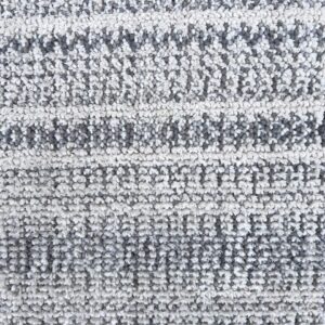 Ivory and grey woven area rug with subtle textured pattern.Close-up of gray and white woven fabric texture.